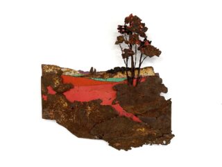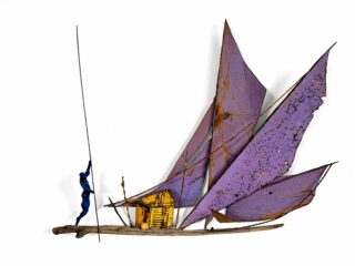 Laurent Chabolle enchante par la poésie et la délicatesse avec lesquelles il donne vie à des morceaux de tôle rouillée. Sous la magie de ses doigts, le métal déchiqueté par les éléments devient paysage, fleur, oiseau, cabane ou pirogue… Morceaux de temps suspendus.