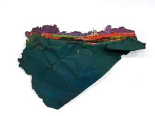 Ses sculptures en tôle, immobiles comme des images, sont à la fois légères, parfois colorées et audacieuses. Le métal ici est aéré et semble jaillir de terre, presque en fusion. L’artiste, avec une habilité ingénieuse, le transforme, le lie et le juxtapose. Chabolle construit, couche après couche, ses paysages comme des vues primitives mais habitées. Ses œuvres presque organiques semblent respirer grâce aux ombres qu’elles génèrent, provoquant aussi chez le spectateur un sentiment de libération. Devant ses paysages, nous sommes au bout d’un monde, non désœuvrés mais bien en admiration.