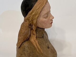 Pour Maria Guilbert, le mystère du « qui nous sommes » réside dans les forêts que nous avons pu admirer, dans les sentiers que nos pas ont foulés. C’est dans l’incommensurable masse du vécu, de cet héritage qui nous colle à l’âme, que nous déterrons chaque jour ce qu’il y a de plus sacré. Éloquentes, bien que figées dans un mutisme songeur, les sculptures de Maria Guilbert portent sous leurs paupières tout un monde caché et intime. Ces sculptures demeurent liées à une nature encore souveraine, dont l’aura les recouvre d’une douceur mystique.