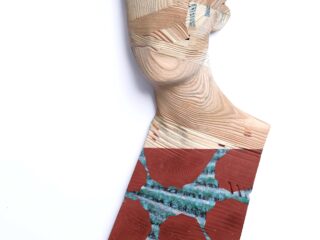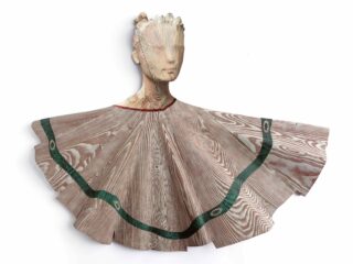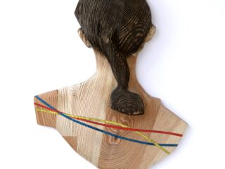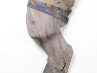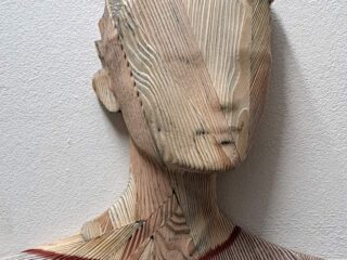 Son travail se focalise essentiellement sur le visage et ses milles nuances. Chaque sculpture est ici un savant agglomérat de fragments de bois de conifère, combiné avec des ajouts d’encre de chine ou d’acrylique. Chaque visage est à chaque fois différent, expression d’une volonté d’universalité du propos, tantôt personnalisé par des tatouages ou des signes, tantôt par des stigmates, des tissus, des couleurs.